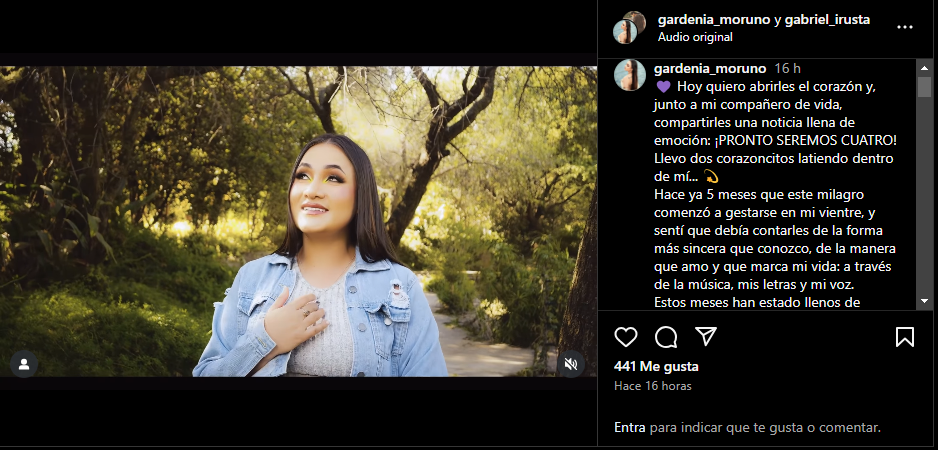 Gardenia también remarcó que sus seguidores han sido parte fundamental de su crecimiento artístico y personal, y que por ello deseaba hacerlos partícipes de este momento único. Su mensaje conmovió a miles de personas, que rápidamente reaccionaron con muestras de cariño y felicitaciones en redes sociales.
