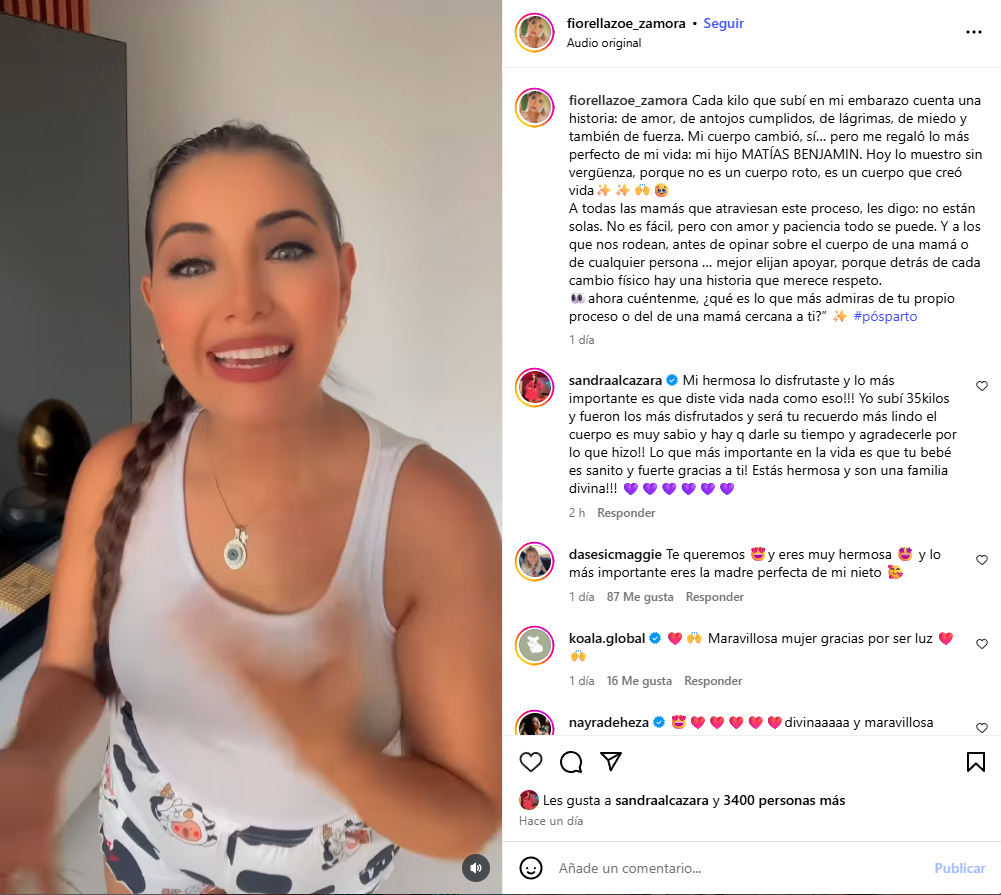 «Mi cuerpo no me avergüenza, sino que lo admiro por que hizo un niño sano y hermoso y no tengo prisa tampoco voy a hacer dieta ni me voy a operar estoy disfrutando de mi parto y sobre todo de esta nueva etapa con mi hijo” expresó, marcando un contraste con los discursos sociales que suelen presionar a las mujeres a recuperar de inmediato su figura. Su mensaje fue recibido con aplausos y generó una ola de apoyo en redes.