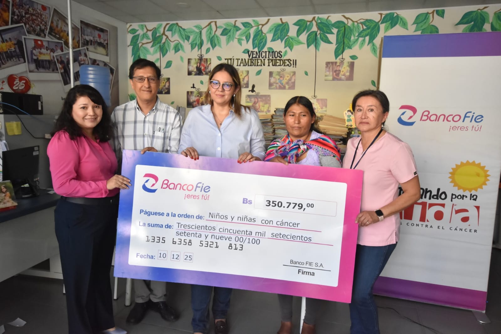 En la ciudad de Santa Cruz, el monto asciende a Bs. 715, 297 y será ejecutado por AFANIC, con el apoyo de Fundación CRE, destinando los recursos a la medicación, equipamiento, estudios externos, e insumos para las niñas y niños que reciben atención médica en el Instituto Oncológico del Oriente Boliviano.