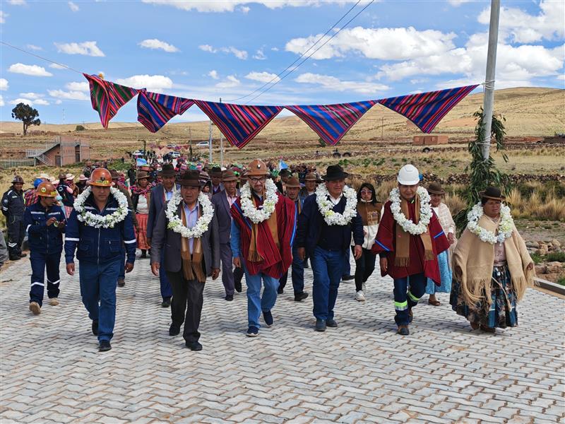 Diciembre 2025.- En el marco de su política de Responsabilidad Social Empresarial (RSE) y de sus pilares de sostenibilidad y desarrollo comunitario, la Sociedad Boliviana de Cemento (SOBOCE) realizó la entrega de 10.000 metros cuadrados de enlosetado en las comunidades de Colquencha y Marquiviri, provincia Aroma del departamento de La Paz, contribuyendo de manera directa a la mejora de la infraestructura urbana y la calidad de vida de la población.