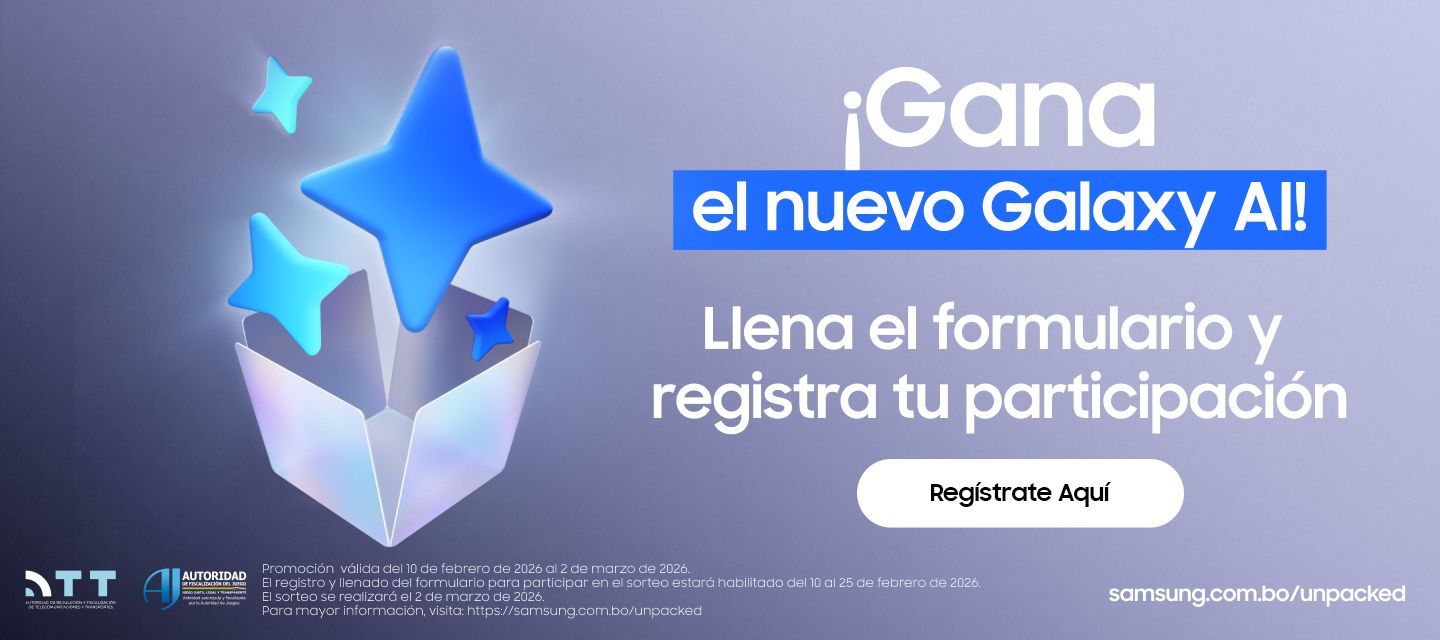 El registro para la campaña “Gana el nuevo Galaxy AI” estará vigente hasta el 25 de febrero de 2026 a nivel nacional. Para participar, los interesados deben completar el formulario disponible en https://samsung.com.bo/unpacked. La actividad está autorizada y fiscalizada por la Autoridad de Juegos (AJ).