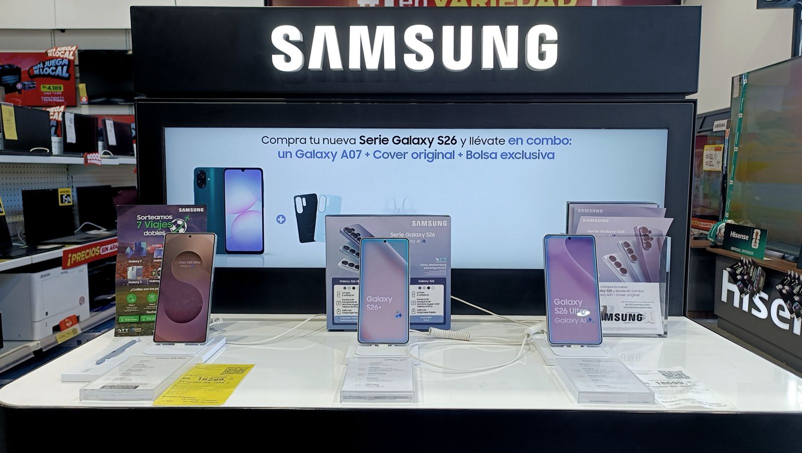 Quienes opten por este combo especial, que incluye el Galaxy S26, su cover original en cualquiera de sus tres versiones, el Galaxy A07 en color verde y una bolsa exclusiva, podrán acceder a seis oportunidades de ganar, ampliando significativamente sus posibilidades dentro de la promoción.