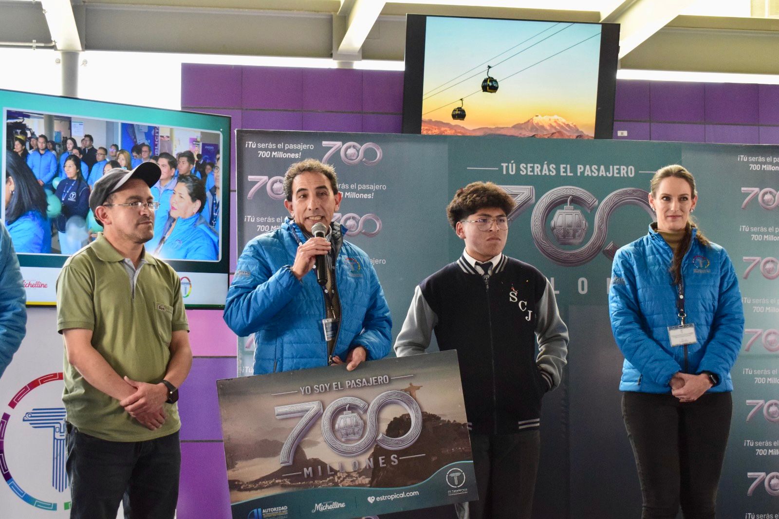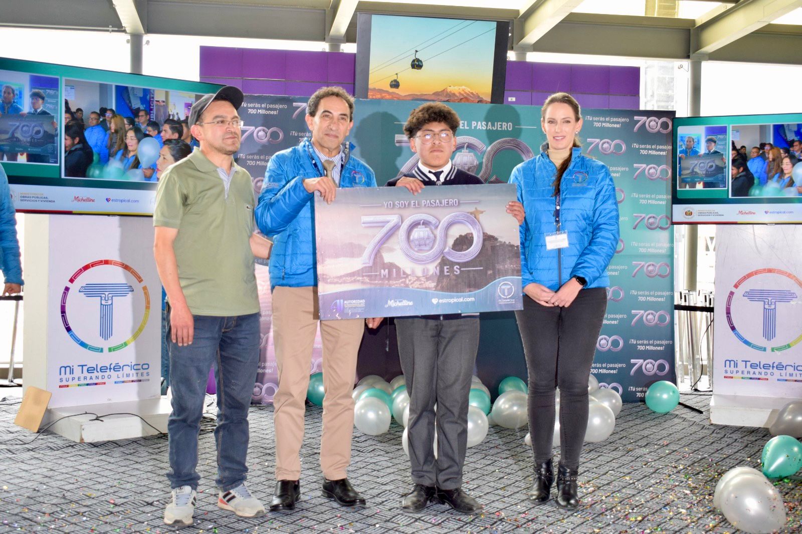 La mañana de este miércoles, la Línea Plateada de Mi Teleférico recibió al pasajero 700 millones, premio que recayó en un estudiante de la ciudad de El Alto quien utilizaba el servicio para dirigirse a su unidad educativa. Este logro, representa un nuevo hito histórico para la empresa patrimonio de los paceños.